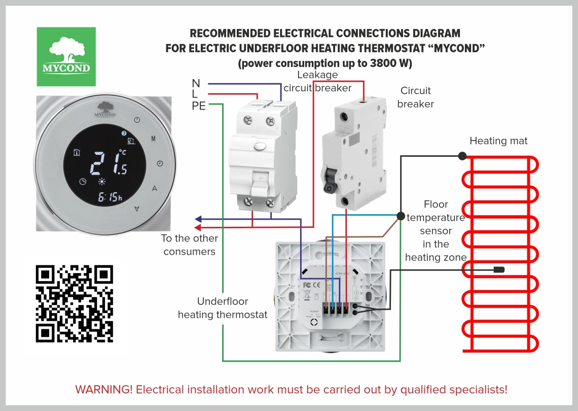 In the case of electric underfloor heating (mat, film or cable), the use of a floor sensor is mandatory! It is used to protect the floor from overheating. Also, this floor sensor is necessary if you plan to use different wooden floor coverings (laminate, parquet or parquet board).